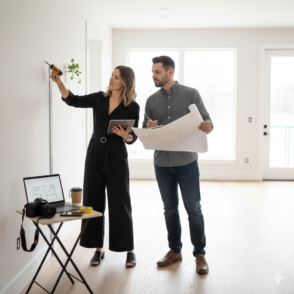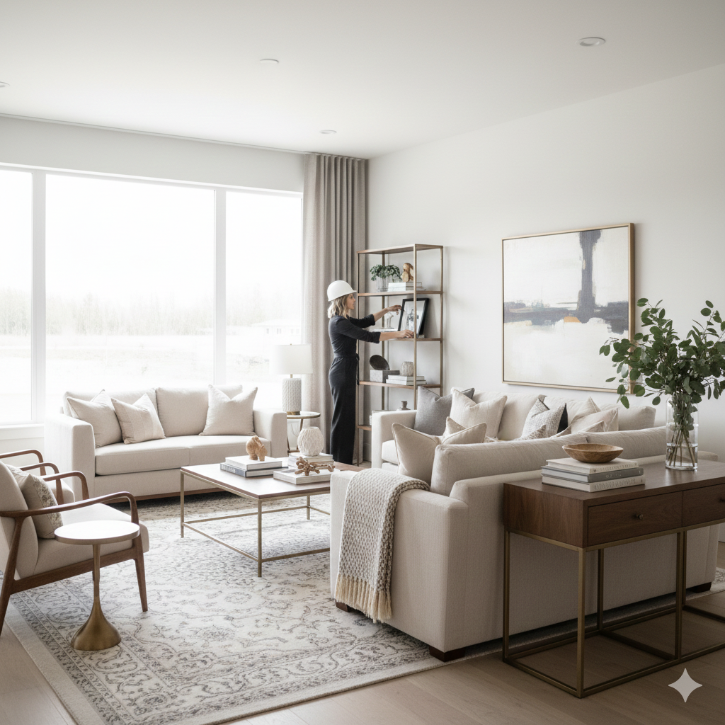Furniture placement, styling, and finishing touches complete the transformation.
